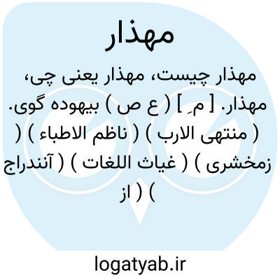 مهذار. [ م ِ ] ( ع ص ) بیهوده گوی. ( منتهی الارب ) ( ناظم الاطباء ) ( زمخشری ) ( غیاث اللغات ) ( آنندراج ) ( از اقرب الموارد ). مهذارة. ( ناظم الاطباء ). هرزه گوی. ( زمخشری ). قبقاب. یاوه سرای. بسیار یاوه گوی. بسیارهذیان. هذیان گوی. هرزه درای. ( از یادداشتهای مؤلف ). ج، مهاذیر. ( مهذب الاسماء ):