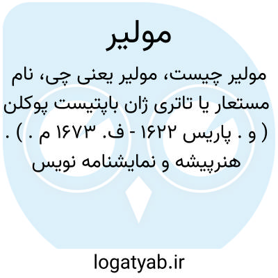 نام مستعار یا تاتری ژان باپتیست پوکلن ( و. پاریس ۱۶۲۲ - ف. ۱۶۷۳ م. ). هنرپیشه و نمایشنامه نویس فرانسوی و یکی از کمدی نویسان بزرگ جهان. پدرش در دربار تقربی داشت و بامید آنکه جای خود را بفرزند بسپارد در تربیت ژان بسیار کوشید. مولیر نخست آموختنیهای مقدماتی را در مدرسه کلرمون که خاص بزرگزادگان فرانسه بود فرا گرفت و گمان میرود که سپس در اورلئان بتحصیل در رشته حقوق پرداخته است ولی چون هنرپیشگی را از هر کاری بیشتر دوست داشت به ت آتر روی آورد و با رنج بسیار یک گروه ت آتری تشکیل داد که خود نیز از بازیگران آن بود. اما ت آتر وی پیشرفتی نکرد و مولیر بجهت قرضهائی که ببار آورد بزندان افتاد. ولی ناامید نشد و کار را دنبال کرد تا شهرتی بدست آورد. در سال ۱۶۵۸ بپاریس بازگشت و از آن پس شاهکارهای بزرگ خود [ تارتوف ] [ دن ژوان ] و [ مردم گریز ] [ خسیس ] [ زنان دانشمند ] و [ مریض خیالی ] را نوشت و بروی صحنه آورد. در سال ۱۶۷۳ در حالیکه برای سومین بار مریض خیالی را نمایش میداد دچار تشنجی شد و چند ساعت بعد بدرود زندگی گفت.