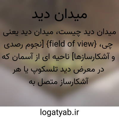 {field of view} [نجوم رصدی و آشکارسازها] ناحیه ای از آسمان که در معرض دید تلسکوپ یا هر آشکارساز متصل به آن قرار می گیرد