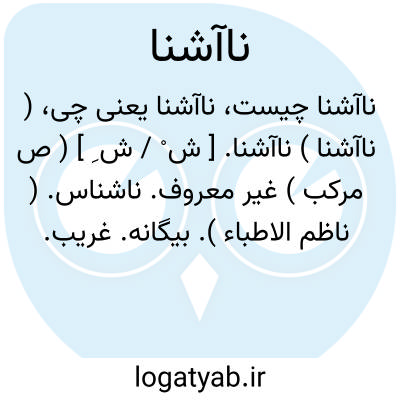 ( ناآشنا ) ناآشنا. [ ش ْ / ش ِ ] ( ص مرکب ) غیر معروف. ناشناس. ( ناظم الاطباء ). بیگانه. غریب. نامعلوم. مردی ناآشنا. ناشناس. شُطسی؛ ناآشنا، زیرک، سرکش. ( منتهی الارب ): تَذَمﱡر؛ دیگرگون و ناآشنا گردیدن. ( از منتهی الارب ):