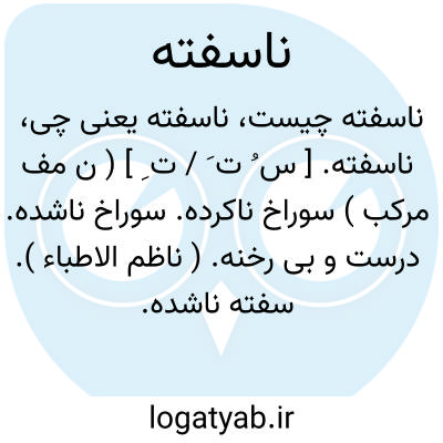 ناسفته. [ س ُ ت َ / ت ِ ] ( ن مف مرکب ) سوراخ ناکرده. سوراخ ناشده. درست و بی رخنه. ( ناظم الاطباء ). سفته ناشده. نسفته: