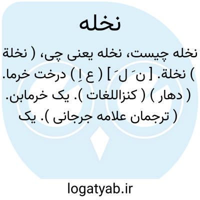 ( نخلة ) نخلة. [ ن َ ل َ ] ( ع اِ ) درخت خرما. ( دهار ) ( کنزاللغات ). یک خرمابن. ( ترجمان علامه جرجانی ). یک درخت خرما. ( غیاث اللغات ). واحد نخل است. رجوع به نخل شود.