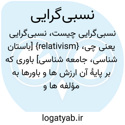 {relativism} [باستان شناسی، جامعه شناسی] باوری که بر پایۀ آن ارزش ها و باورها به مؤلفه ها و معیارهای مطلق و جهان شمول بستگی ندارد