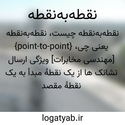 {point-to-point} [مهندسی مخابرات] ویژگی ارسال نشانک ها از یک نقطۀ مبدأ به یک نقطۀ مقصد