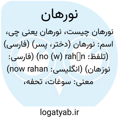 اسم: نورهان (دختر، پسر) (فارسی) (تلفظ: no (w) rahān) (فارسی: نورَهان) (انگلیسی: now rahan)