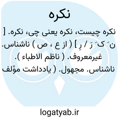 ۱ - ( صفت ) ناشناس. ۲ - (اسم ) اسمی را گویند که در نزد مخاطب معلوم و معین نیست: کتابی را خریدم اسبی را فروختم.توضیح نشانه نکره در فارسی [ی] است که باخر اسم جنس ملحق کنند: کتابیاسبی.یا نکره مخصصه. نکره ایست که با داشتن نشانه ای از نکرت و ابهام بیرون آمده و علامت آن در فارسی [ی] است که بعد از آن [ که ] موصول آید: روا باشد خواندن و نبشتن تفسیر قران بپارسی مران کسی را که او تازی نداند. نکره موصوفه. نکره مخصصه. ۳ - ( صفت ) انسان یا حیوان درشت هیکل و بی قواره: او ورزای سکینه را خوب میشناخت...از آن گاوهای نکره بحرینی بود. ۴ - درشت و خشن: [ صدای نکره ].