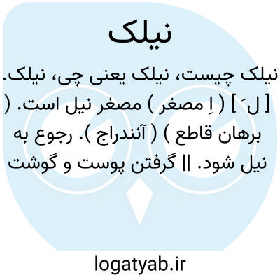 نیلک. [ ل َ ] ( اِ مصغر ) مصغر نیل است. ( برهان قاطع ) ( آنندراج ). رجوع به نیل شود. || گرفتن پوست و گوشت باشد به سر دو ناخن. نشکنج. ( از رشیدی ) ( از جهانگیری ). گرفتن اعضا و اندام را به سر دو ناخن انگشت دست چنانکه به درد آید. ( برهان قاطع ) ( آنندراج ). نشگون. وشگون. || کبودی اندک. کبودرنگ و مایل به کبودی. || کبودی که در انگشتها از سرما پدید می آید. ( ناظم الاطباء ). || نوعی از جامه ابریشمی. ( غیاث اللغات ).