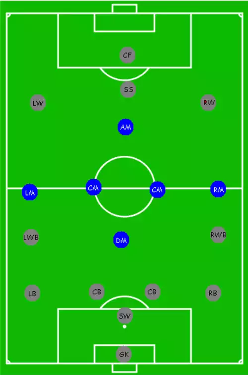 مربیان در ترکیب ۱_۵_۴ به طور معمول از همه هافبک ها، و در سیستم ۳ _۳_۴ از ۳ مهاجم کاذب ( هافبک هجومی ) استفاده می کنند که تیم ملی اسپانیا با عنوان تیکی تاکا یا فوتبال بدون مهاجم، صاحب سبک در فوتبال دانسته شده است.