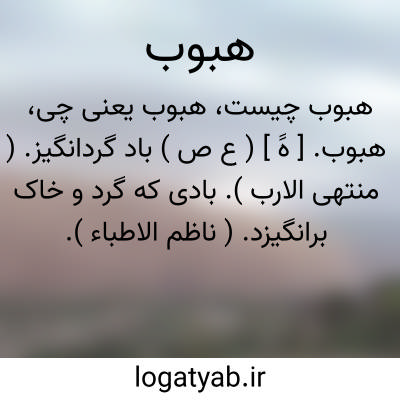 ۱-(مصدر ) وزیدن باد. ۲- طلوع کردن ستاره. ۳- (اسم ) وزش باد: (( بر آمدبادی ازاقصای بابل هبوبش خاره دروبارهافکن. ) ) (منوچهری ) ۴- طلوع ستاره.