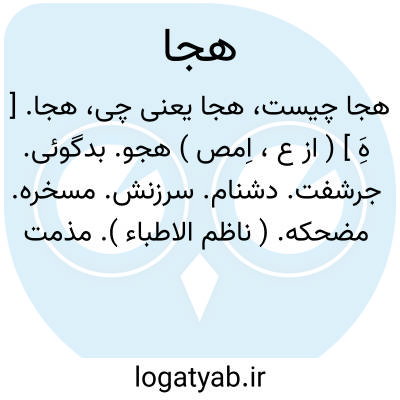 هجا. [ هَِ ] ( از ع، اِمص ) هجو. بدگوئی. جرشفت. دشنام. سرزنش. مسخره. مضحکه. ( ناظم الاطباء ). مذمت کردن. ( شمس اللغات ). نکوهیدن. ( آنندراج ) ( غیاث ) ( از تاج المصادر بیهقی ) ( از دهار ):