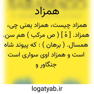 همزاد. [ هََ ] ( ص مرکب ) رفیقی که در زاد و راحله شریک باشد. ( از برهان ). گمان نمیرود که جزء دوم این ترکیب، زاد ( واژه عربی به معنی توشه ) باشد و مؤلف برهان با معنی دوم همزاد چنین تعبیری برای لفظ «زاد» کرده است.
