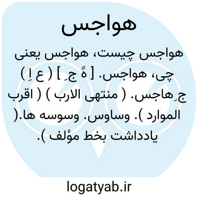 ( اسم ) جمع هاجس آنچه درخاطرگذرد آرزوهای نفسانی: درعنفوان جوانی و ریعان کامرانی که محال و ساوس شیطانی فسیح تر باشد و میدان هواجس جسمانی بسیط تر ازمناکر ومناهی است بداشته است.