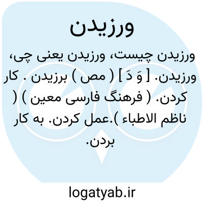 ورزیدن. [ وَ دَ ] ( مص ) برزیدن. کار کردن. ( فرهنگ فارسی معین ) ( ناظم الاطباء ).عمل کردن. به کار بردن. || کوشیدن. جهد کردن. کوشش و سعی نمودن. ( ناظم الاطباء ). || پیاپی انجام دادن. ( فرهنگ فارسی معین ):