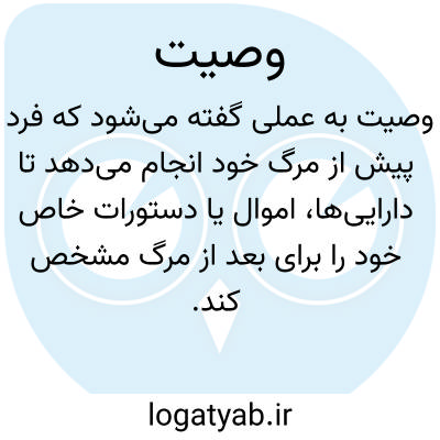 وصیت به عملی گفته می‌شود که فرد پیش از مرگ خود انجام می‌دهد تا دارایی‌ها، اموال یا دستورات خاص خود را برای بعد از مرگ مشخص کند. این عمل معمولاً به‌صورت مکتوب انجام می‌شود و هدف آن حفظ حق و حقوق دیگران و جلوگیری از اختلافات بعد از مرگ است. وصیت نشان‌دهنده‌ی مسئولیت‌پذیری فرد نسبت به خانواده و جامعه است و اطمینان می‌دهد که اموال و خواسته‌های فرد پس از فوت به درستی اجرا می‌شود.