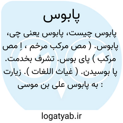 پابوس. ( مص مرکب مرخم، اِ مص مرکب ) پای بوس. تشرف بخدمت. پا بوسیدن. ( غیاث اللغات ). زیارت: به پابوس علی بن موسی الرضا علیه السلام مشرف شدن. || ( نف مرکب ) پابوسنده. ( غیاث اللغات ).