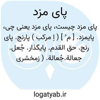 پایمزد. [ م ُ ] ( اِ مرکب ) پارنج. پای رنج. حق القدم. پایگذار. جُعل. جعالة.جُعالة. ( زمخشری ). جعیلة. خرج. ( دهار ). مزد قاصد و مزد قدم رنجه کردن مهمان. ( رشیدی ). اجرتی که به قاصدان و پیادگان دهند. ( برهان ). مزدی که به پزشک برای عیادت و معالجه بیمار دهند: پس شمشیری بیرون آورد غلافش بزر اندر گرفته گفت بپایمزد تو شاید. ( مجمل التواریخ و القصص ). روزی به طلب وام داری رفته بود آن وام دار در خانه نبود چون او را ندید پای مزد طلب کرد زن وام دار گفت شوهرم حاضر نیست و من چیزی ندارم که ترا دهم. ( تذکرةالاولیاء عطار ). در ابتدا مال دار بود و ربا دادی و ببصره نشستی و هر روز بتقاضای معاملان خود شدی اگر سیمی نیافتی پای مزد طلب کردی و نفقه خود هر روز از آن ساختی. ( تذکرةالاولیاء عطار چ نیکلسن ص 49 ).