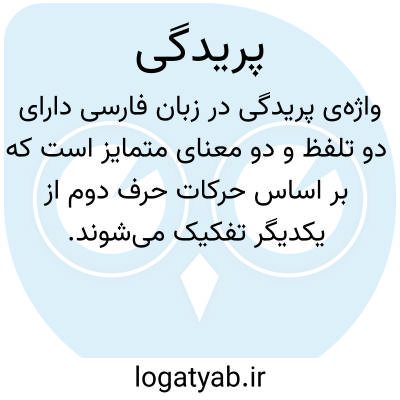 واژهی پریدگی در زبان فارسی دارای دو تلفظ و دو معنای متمایز است که بر اساس حرکات حرف دوم از یکدیگر تفکیک میشوند. صورت نخست، پَریدَگی (با فتحه روی ر) به معنای عمل پریدن، جهش یا پرواز است. این معنا بیشتر در متون کهن و ادبی به کار میرود و مترادف با واژههایی چون «پرش» و «طیران» است. همچنین، ترکیب رنگپریدگی که بهصورت رنگ باختگی نیز تعبیر میشود، از همین ریشه است و به حالت زردی یا سفیدی غیرطبیعی در چهره اشاره دارد که ناشی از بیماری، ترس یا ضعف است. صورت دوم، پُریدَگی (با ضمه روی ر) به مفهوم پرشدگی و انباشتگی است. این واژه بیانگر حالت چیزی است که تا حد ممکن پُر شده باشد و گنجایش بیشتری نداشته باشد. هر دو صورت این واژه بهصورت مصدر جعلی و در قالب «حامص» (اسم معنی) به کار میروند و کاربرد امروزی آنها عمدتاً در حوزهی ادبیات و متون رسمی دیده میشود.