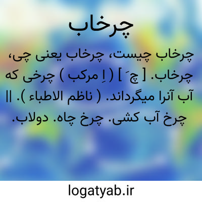 چرخاب. [ چ َ ] ( اِ مرکب ) چرخی که آب آنرا میگرداند. ( ناظم الاطباء ). || چرخ آب کشی. چرخ چاه. دولاب. چرخ دولاب. || گرداب. ( آنندراج ). خربله و گرداب. ( ناظم الاطباء ):