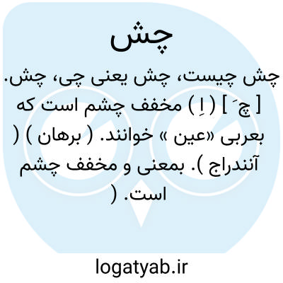 چش. [ چ َ ] ( اِ ) مخفف چشم است که بعربی «عین » خوانند. ( برهان ) ( آنندراج ). بمعنی و مخفف چشم است. ( انجمن آرا ). چشم و عین. ( ناظم الاطباء ). رجوع به چشم شود.