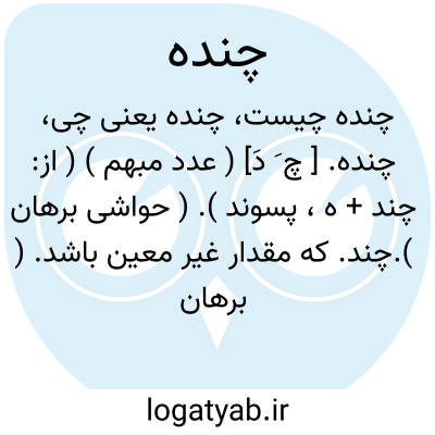 چنده. [ چ َ دَ] ( عدد مبهم ) ( از: چند + ه، پسوند ). ( حواشی برهان ).چند. که مقدار غیر معین باشد. ( برهان ) ( آنندراج ).