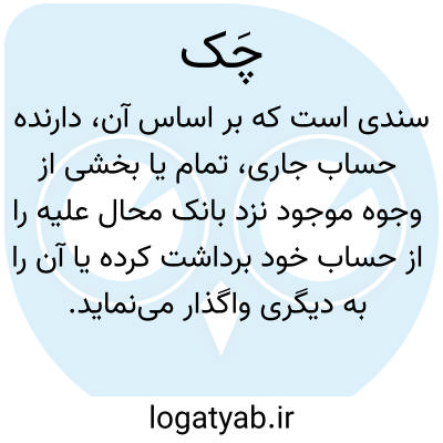 برگه یا نوشته ای که به موجب آن دارندۀ حساب جاری در بانک تمام یا قسمتی از وجوهی را که نزد مَحالٌ علَیه دارد، مسترد یا به دیگری واگذار می کند. مواد ۳۱۰ تا ۳۱۷ قانون تجارت مصوبِ سال ۱۳۱۴ش، به چک اختصاص یافته است. طبق مادۀ ۳۱۴ آن، چک برخلاف سفته و برات ذاتاً تجاری نیست و در صورتی که توسط تاجر یا برای امور تجاری صادر شده باشد، تجاری محسوب می شود. از آن جا که استفاده از سفته و برات برخلاف چک مستلزم پرداخت حق تمبر بود، استفاده از چک رایج و تبدیل به سندی بانکی شد که عمدتاً توسط بانک ها تنظیم می شود. با توجه به رواج گستردۀ چک، مقررات کیفری خاصی دربارۀ آن تصویب شده و این مقررات تاکنون چندین بار تغییر اساسی کرده است. هم اکنون قانون صدور چک مصوبِ ۱۳۵۵ با الحاقات و اصلاحات سال های ۱۳۷۲ و ۱۳۸۲ در این خصوص حاکم است و عمده چک های صادرشده از سوی بانک هایی که طبق قوانین ایران در داخل کشور دایرند، و همچنین شعب آن ها در خارج از کشور، مشمول مقررات این قانون است. بدین ترتیب، چک های صادره از طرف مؤسسات اعتباری و صندوق های قرض الحسنه، مشمول مقررات قانون صدور چک نیستند. به موجب مادۀ یک قانون صدور چک، انواع چک عبارت اند از چک عادی که اشخاص به حساب جاری خود در بانک صادر می کنند. گرچه چک را می توان روی هر ورقه ای نوشت، ولی در عمل بانک ها چک را به صورت چاپی تهیه و به صورت دسته چک در اختیار صاحبان حساب جاری قرار می دهند؛ چک تضمین شده که توسط بانک و به درخواست مشتری صادر می شود و بانک پرداخت آن را تضمین می کند؛ چک تأییدشده که اشخاص به حساب جاری خود صادر می کنند و توسط بانک مَحالٌ علَیه پرداختِ وجه آن تأیید می شود؛ چک مسافرتی که توسط بانک صادر و وجه آن در هریک از شعب بانک یا توسط نمایندگان و کارگزاران آن پرداخت می شود.