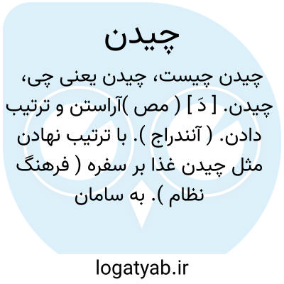 چیدن. [ دَ ] ( مص )آراستن و ترتیب دادن. ( آنندراج ). با ترتیب نهادن مثل چیدن غذا بر سفره ( فرهنگ نظام ). به سامان نهادن چیزها. به نظم و ترتیب نهادن چیزها در جایی. به نظم و ترتیب نزد هم گذاردن. منظم کنار هم نهادن چیزها. به نظم و ترتیب آراستن: ظرفها را دور طاقچه چیده بود؛ ظرفها را با نظم و ترتیب گذاشته بود. سفره را چیدند؛ سفره را گستردند و آراسته و مرتب کردند: