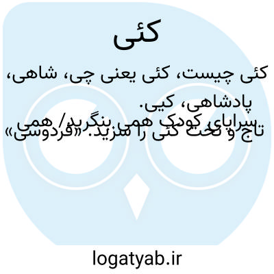 شاهی، پادشاهی، کیی. سراپای کودک همی بنگرید/ همی تاج و تخت کئی را سزید. «فردوسی»