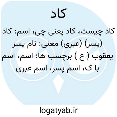 کاد. ( اِخ ) نام یکی از دوازده پسر یعقوب از کنیزکی بنام فلهه. ( از حبیب السیرچ خیام ج 1 ص 59 ). اولادصلبی او ( کاد ) شش تن بودند و اعقاب ایشان به وقت شماره مذکور چهل و یکهزار و پنجاه مرد مبارز بقلم آمدو مقتدای ایشان یاساف بن اعوائیل بود. ( ایضاً ج 1 ص 76 ). این نام در تاریخ گزیده بصورتهای «حاد» و «هاده »و در تفسیر ابوالفتوح رازی بصورت «جاد» آمده است.