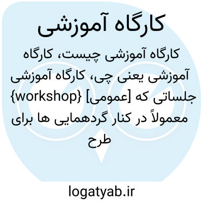{workshop} [عمومی] جلساتی که معمولاً در کنار گردهمایی ها برای طرح مشکلات علمی یا بررسی موضوع های مورد بحث در گردهمایی و ارائۀ راه حل های آنها، با همفکری و همکاری شرکت کنندگان، تشکیل می شود