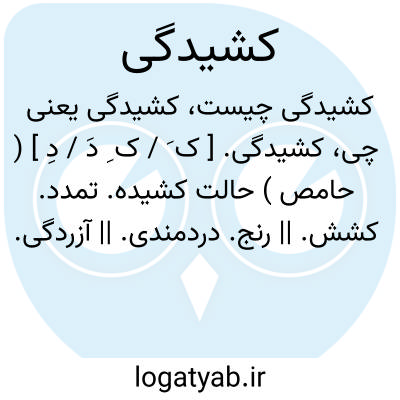کشیدگی. [ ک َ / ک ِ دَ / دِ ] ( حامص ) حالت کشیده. تمدد. کشش. || رنج. دردمندی. || آزردگی. افسردگی. ( ناظم الاطباء ). || درازی. ( یادداشت مؤلف ). || انقباض: درد پشت پدید آید بسبب خشکی و کشیدگی عضله های آن موضع. ( ذخیره خوارزمشاهی ).
