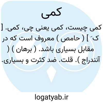 کمی. [ ک َ ] ( حامص ) معروف است که در مقابل بسیاری باشد. ( برهان ) ( آنندراج ). قلت. ضد کثرت و بسیاری. اندکی. ( ناظم الاطباء ). کم بودن. اندکی. قلت. مقابل افزونی و بسیاری و فراوانی. ( فرهنگ فارسی معین ). قلت. ندرت. شذوذ. نزارت. اندکی. مقابل بیشی و فزونی و بسیاری و کثرت. ( یادداشت به خط مرحوم دهخدا ):