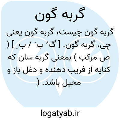 گربه گون. [ گ ُ ب َ / ب ِ ] ( ص مرکب ) بمعنی گربه سان که کنایه از فریب دهنده و دغل باز و محیل باشد. ( برهان ) ( غیاث ). ظاهراً بقیاس گربه سان ساخته شده است: