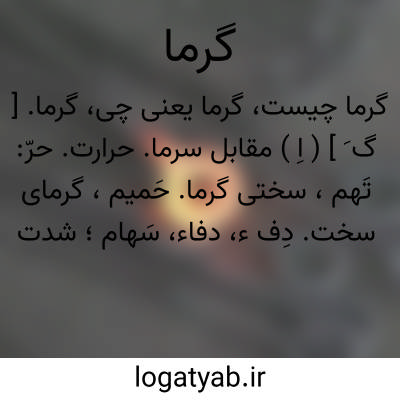 گرما. [ گ َ ] ( اِ ) مقابل سرما. حرارت. حرّ: تَهم، سختی گرما. حَمیم، گرمای سخت. دِف ء، دفاء، سَهام؛ شدت گرما. صَیهَب، شدت گرما و روز گرم. صَیهَد، شدت گرما. وَعک؛ سختی گرما. ( منتهی الارب ): سپاه گرد آمده بود آنجا و گرمائی گرم بود. ( ترجمه طبری بلعمی ).