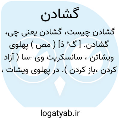 گشادن. [ گ ُ دَ] ( مص ) پهلوی ویشاتن، سانسکریت وی -سا ( آزاد کردن،باز کردن ). در پهلوی ویشات، ظاهراً از وی -شا، سانسکریت وی + شا ( باز کردن،آزاد کردن ) ( = های اوستایی + وی، کردی وشین ( جدا شدن [ میوه از درخت ] افتادن و ریختن [ مو از بدن ] )دزفولی و شوشتری گوشیدن.باز کردن. آشکار کردن. رها ساختن. رجوع به گشودن شود. ( از حاشیه برهان قاطع چ معین ). باز کردن. فتح. افتتاح. تفتیح. گشودن: نشط؛ گشودن گره برفق. فک؛ فَکاک. ( ترجمان القرآن ). صَفق؛ گشادن در را. تَجنیص؛ گشادن چشم از بیم. تَهصیص؛ نیکو گشادن چشم را و نیکو نگریستن. جیف؛ گشادن در را. ( منتهی الارب ):