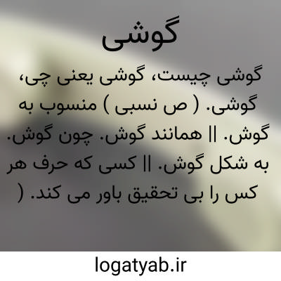گوشی. ( ص نسبی ) منسوب به گوش. || همانند گوش. چون گوش. به شکل گوش. || کسی که حرف هر کس را بی تحقیق باور می کند. ( فرهنگ نظام ). || ( اِ ) محصول معینی که به شمار اعداد مواشی در ایران از رعایا گیرند چنانکه در هند چون فوج داران مواشی از موضعی آورده باشند و باز به رعایا خواهند که استرداد کنندیک چیزی سر رأس مقرر نمایند و آن را گوشی گویند و این مقابله سرانه است و آن محصول به شمار سر مردمان باشد چنانکه گذشت. ( آنندراج ). نوعی از باج که بر جانوران گیرند. ( چراغ هدایت ). خراجی که از ستور بارکش و دیگر حیوانات می گیرند. ( ناظم الاطباء ):