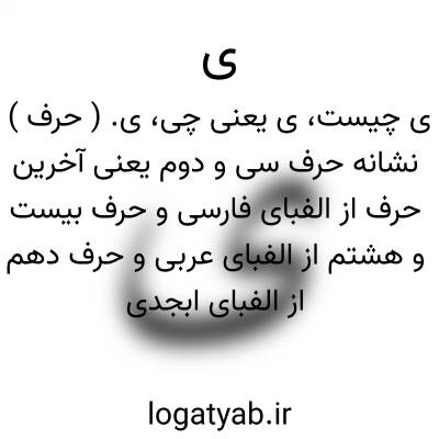 ی. ( حرف ) نشانه حرف سی و دوم یعنی آخرین حرف از الفبای فارسی و حرف بیست و هشتم از الفبای عربی و حرف دهم از الفبای ابجدی است. در حساب جُمَّل آن را دَه گیرند. نام آن «یا»، «یاء»، «ی » و «یی » است و در خط به صورتهای زیر نوشته و با اصطلاحات «ی تنها» چنانکه «ی » در «خدای » و «ی اوّل » چنانکه «یَ» در «یار» و «پارسایی »، و «ی وسط» چنانکه «یَ » در «امین »، و «ی آخر» چنانکه «َی » در «مسلمانی ». این علائم کتبی در عربی و فارسی علاوه بر اینکه نماینده حرف صامت «ی » [ ی ِ ] است نماینده مصوت «ی » [ ای ] هم هست و با آنکه این دو از نظر زبانشناسی دو حرف کاملاً جداگانه است، در عربی و فارسی یک حرف بشمار می رود و با توجه به تلفظ خاص یای مجهول که شرح آن خواهد آمد این علائم کتبی نماینده سه صدا و سه حرف خواهد بود.