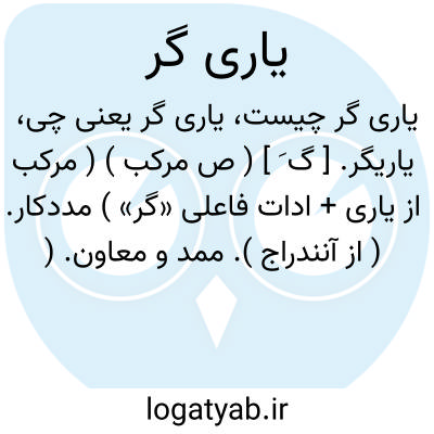 یاریگر. [ گ َ ] ( ص مرکب ) ( مرکب از یاری + ادات فاعلی «گر» ) مددکار. ( از آنندراج ). ممد و معاون. ( آنندراج ذیل یارمند ). عون. عوین. رافد. ( منتهی الارب ). مساعد. کمک کننده. یارمند: گفت [ کیومرث ] مرا یاریگر خدای بسنده است. ( ترجمه طبری ).