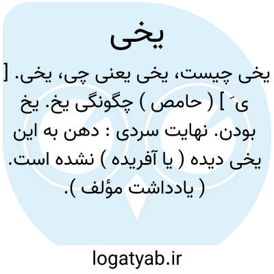 یخی. [ ی َ ] ( حامص ) چگونگی یخ. یخ بودن. نهایت سردی: دهن به این یخی دیده ( یا آفریده ) نشده است. ( یادداشت مؤلف ). || ( ص نسبی ) هرچیز منسوب به یخ: بازیهای یخی، قالبهای یخی، توده های یخی. ( یادداشت مؤلف ). || یخ فروش. آنکه یخ فروشد. که فروختن یخ پیشه دارد. ( یادداشت مؤلف ).