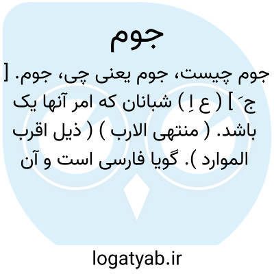 جوم. [ ج َ ] ( ع اِ ) شبانان که امر آنها یک باشد. ( منتهی الارب ) ( ذیل اقرب الموارد ). گویا فارسی است و آن عبارت از شبانانی است که امر آنان و سخن آنان و مجلس آنان واحد باشد. ( ذیل اقرب از لسان العرب ). || ج ِ جامة، بمعنی یکی جام. ( منتهی الارب ). رجوع به جام و جامة شود. || ( مص ) طلب کردن چیزی را، خیر باشد یا شر. ( اقرب الموارد ) ( منتهی الارب ).