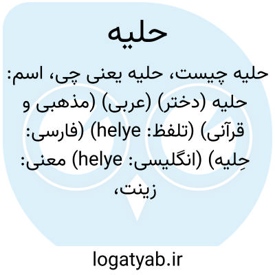 اسم: حلیه (دختر) (عربی) (مذهبی و قرآنی) (تلفظ: helye) (فارسی: حِليه) (انگلیسی: helye)