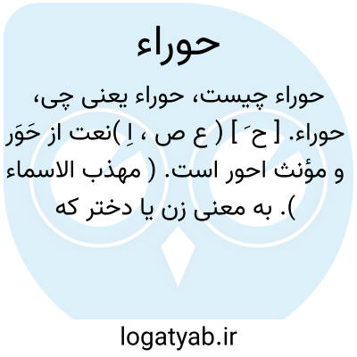 حوراء. [ ح َ ] ( ع ص، اِ )نعت از حَوَر و مؤنث احور است. ( مهذب الاسماء ). به معنی زن یا دختر که چشمانی سیاه و گرد و مدور و پلکهای باریک داشته باشد یا دارای چشمانی باشد سخت سپید یا سخت سیاه یا دارای بدنی سخت سپید یا دارای چشمانی تمام سیاه، چنانکه چشمان آهوست و این در انسان نیست؛ بلکه با استعاره بر او اطلاق گردد. ( منتهی الارب ).