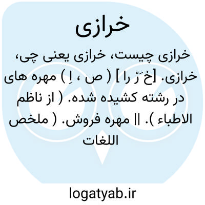خرازی. [خ َرْ را ] ( ص، اِ ) مهره های در رشته کشیده شده. ( از ناظم الاطباء ). || مهره فروش. ( ملخص اللغات حسن خطیب ). امروز فروشنده صابون و عطر و شانه و مقراض و قلمتراش و آینه های کوچک و قوطی سیگار و سر سیگارو کش و امثال آنرا خرازی گویند. ( یادداشت مؤلف ).