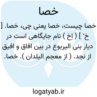 خصا. [ خ ُ ] ( اِخ ) نام جایگاهی است در دیار بنی الیربوع در بین افاق و افیق از نجد. ( از معجم البلدان ).