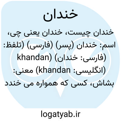 برهمن نگه کرد خندان بمن.سعدی ( بوستان ).خلق از پی ما دوان و خندان.سعدی ( گلستان ). || خوشحال. خوش. شادان: و از عجائب تبت آن است که هر که اندر تبت شود خندان و شادان دل شود بی سببی. ( حدود العالم ).