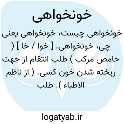 خونخواهی. [ خوا / خا ] ( حامص مرکب ) طلب انتقام از جهت ریخته شدن خون کسی. ( از ناظم الاطباء ). طلب خون کسی کردن. طلب ثار. ( یادداشت مؤلف ):