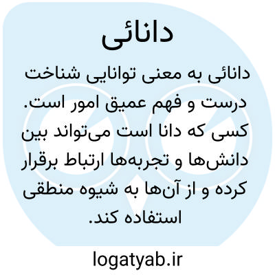 دانائی به معنای توانایی شناخت درست و فهم عمیق امور است. کسی که دانا است، صرفاً اطلاعات زیادی ندارد، بلکه می‌تواند بین دانش‌ها و تجربه‌ها ارتباط برقرار کرده و از آن‌ها به شیوه‌ای منطقی و خردمندانه استفاده کند. دانائی فراتر از یادگیری صرف است و شامل آگاهی از پیامدهای کارها و تصمیم‌ها نیز می‌شود.