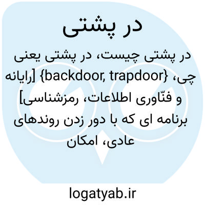 {backdoor, trapdoor} [رایانه و فنّاوری اطلاعات، رمزشناسی] برنامه ای که با دور زدن روندهای عادی، امکان دستیابی به یک سامانۀ رایانه ای را فراهم می سازد