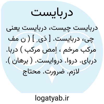دربایست. [ دَی ِ ] ( ن مف مرکب مرخم، اِمص مرکب ) دربا. دربای. دروا. دروایست. ( برهان ). لازم. ضرورت. محتاج الیه. وایه. بایا. وایا. نیازی. ( یادداشت مرحوم دهخدا ): چون ایشان را [ حصیری و پسرش ] درنگری باز چون ایشان زودزود خدمتکاران صدیق درگاه دربایست بدست نیابند.( تاریخ بیهقی ص 166 ). نگویم که مرا سخت دربایست نیست، اما چون بدانچه دارم و اندک است قانعم و زر و وبال زر و مال چه بکار آید. ( تاریخ بیهقی ص 521 ). سبب بازداشتن ( یعنی منع ) فصد در شهرهای سرد، آن است که اندراین شهرها خون اندر تن سخت، دربایست باشد تا اندامها بدان گرم بود و رطوبتها بدان پخته گردد. ( ذخیره خوارزمشاهی ). هرگاه مردم را چیزی دربایست از دست بشودیا از آن بازماند... ( ذخیره خوارزمشاهی ). و هرچه دربایست بود، بدو داد و براه افکند. ( تاریخ بیهقی ).