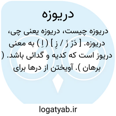 دریوزه. [ دَرْ زَ / زِ ] ( اِ ) به معنی دریوز است که کدیه و گدائی باشد. ( برهان ). آویختن از درها برای سؤال یعنی گدائی، و دریوز و دریوزه به معنی جستجو کردن از در که عبارت از گدائی است، و دریوز به معنی گدا نیز آمده چه یوز به معنی جستجو و جوینده هر دو صحیح است، و درویزه مقلوب دریوزه است. ( غیاث ). نان خواستن. ( اوبهی ). کدیه و گدائی باشد، و بالفظ کردن و آمدن و فرستادن مستعمل است. ( آنندراج ). گدای دریوزه، روان خواه. ( فرهنگ اسدی ). سؤال. درویزه. درویژه. کدیه و گدایی و بینوائی و فقیری و تنگدستی و سؤال و درخواست و ذخیره مبرات. ( ناظم الاطباء ). ورجوع به درویزه و درویش شود: تا روزی بهردفع بی نوائی به اسم گدائی مرا بر در زندان آوردند وبرای کدیه و دریوزه برپای کردند. ( مقامات حمیدی ).