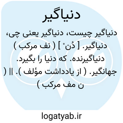 دنیاگیر. [ دُن ْ ] ( نف مرکب ) دنیاگیرنده. که دنیا را بگیرد. جهانگیر. ( از یادداشت مؤلف ). || ( ن مف مرکب ) که دنیا او را بگیرد. که حرص به دنیا او را گرفتار سازد. که مفتون و دلداده دنیا باشد. شیفته تعلقات دنیوی. دنیاپرست. ( از یادداشت مؤلف ).